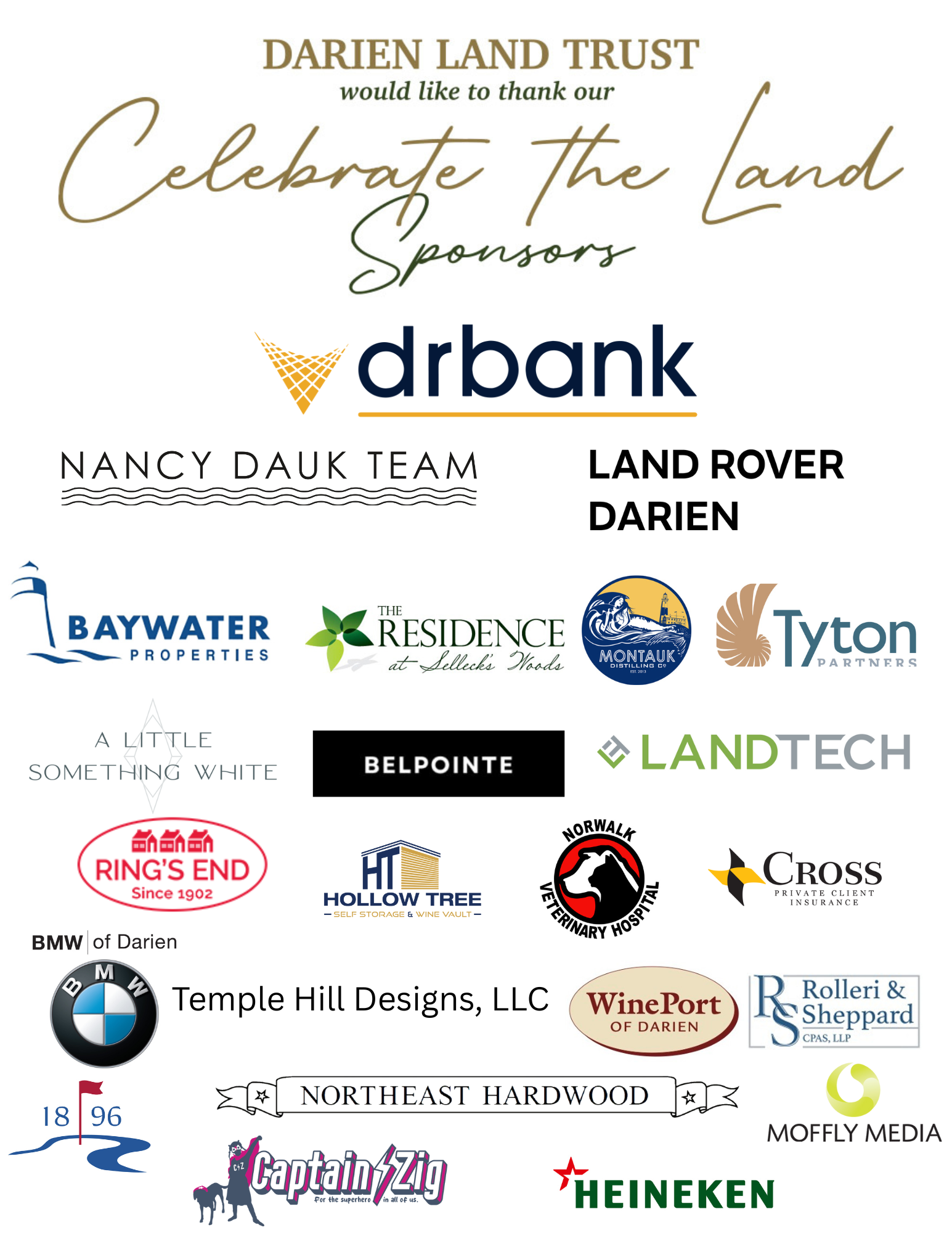 We are deeply grateful to our sponsors for their generous early support of Celebrate the Land. Their commitment not only makes this special night possible but also strengthens our mission to preserve and protect the open spaces that make Darien such a beautiful place to live.